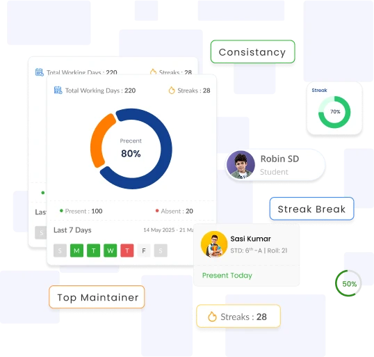 Promote regular attendance by showcasing streak achievers—track continuous presence, reward discipline, and motivate students through visible streak milestones.