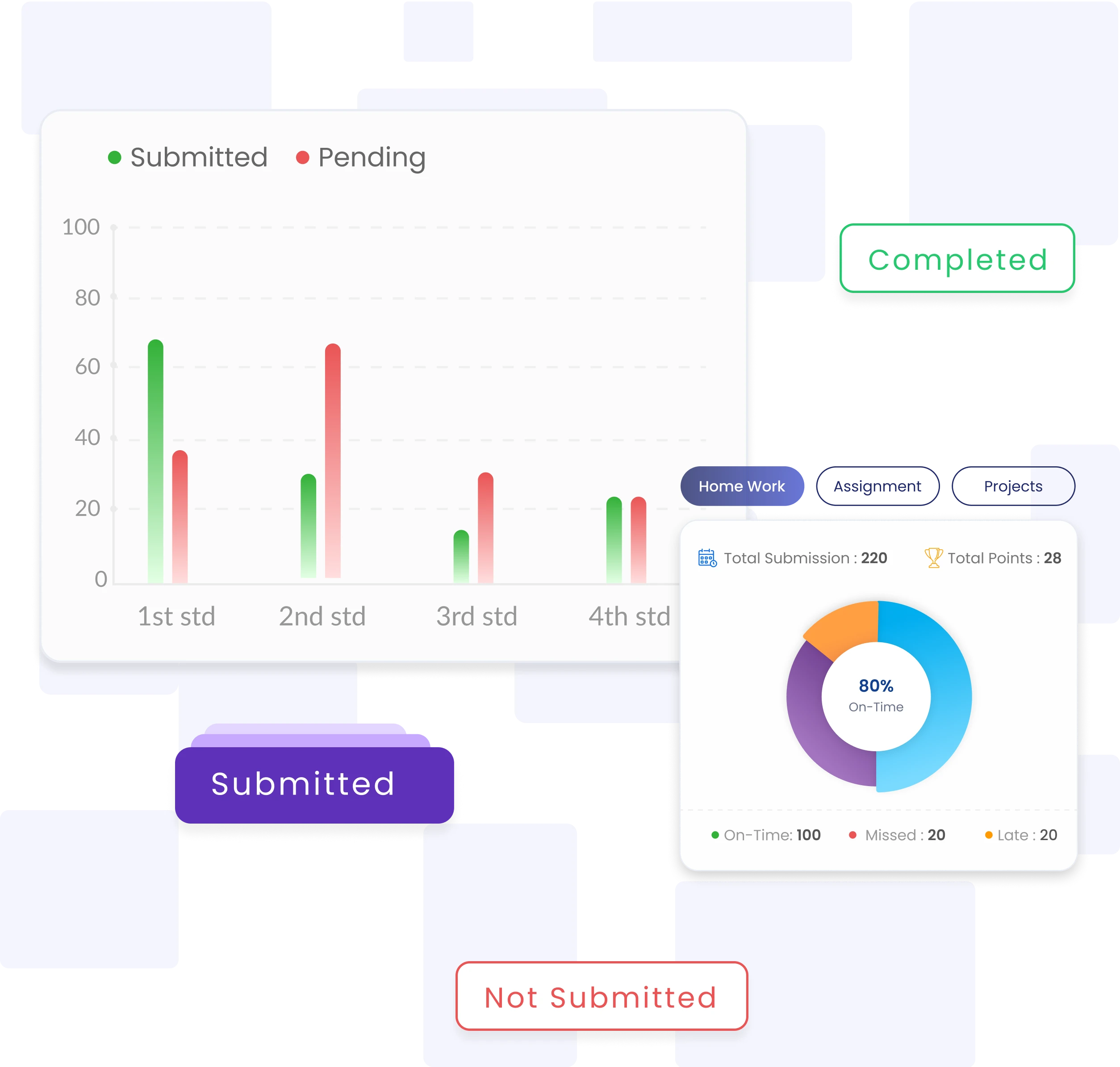 Keep track of student homework submissions, ensure timely completion, and maintain clear records for review and academic performance tracking.
