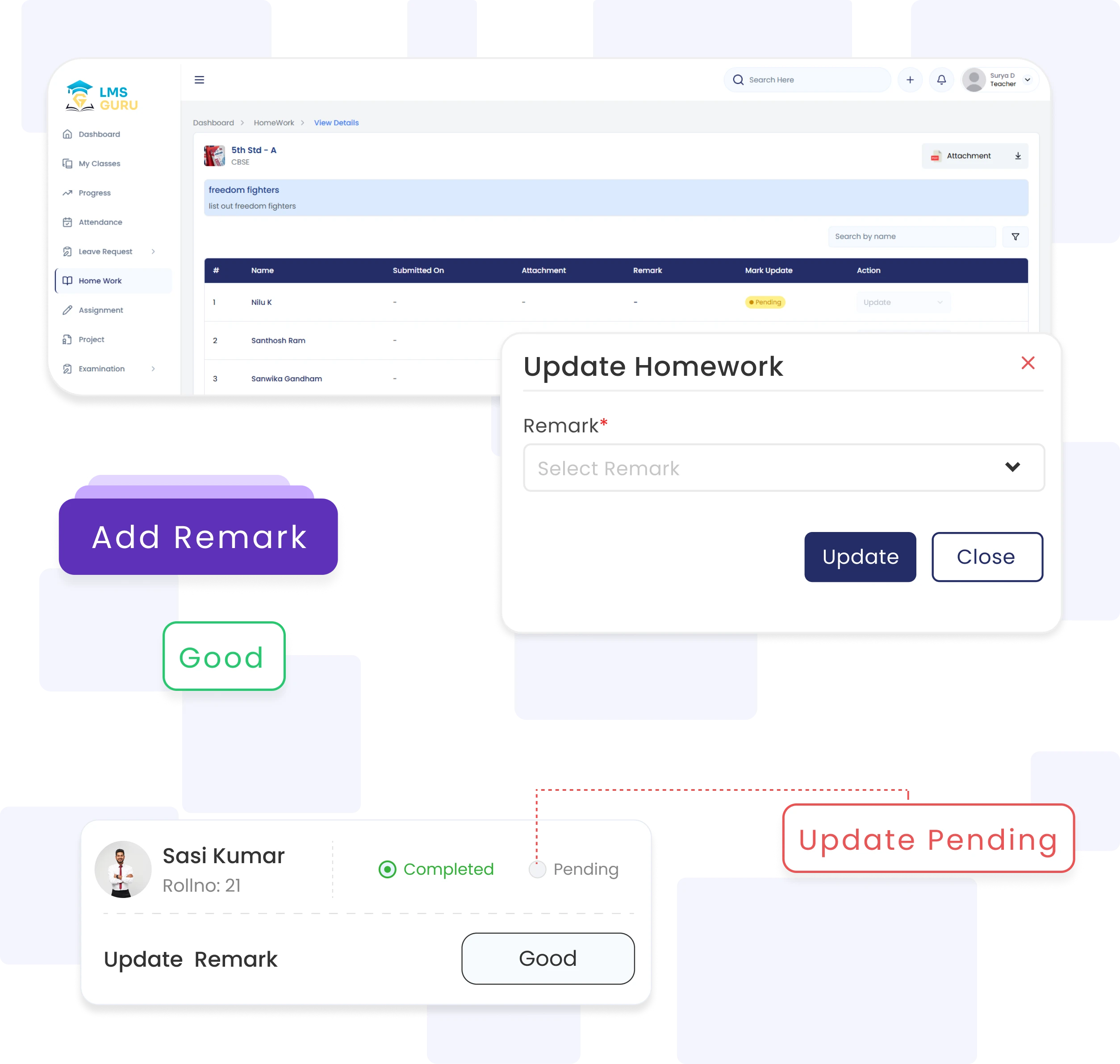 Allow teachers to review submitted homework, provide meaningful remarks, and update evaluation details instantly—ensuring transparency and student improvement.